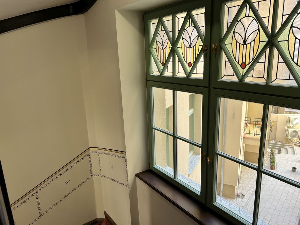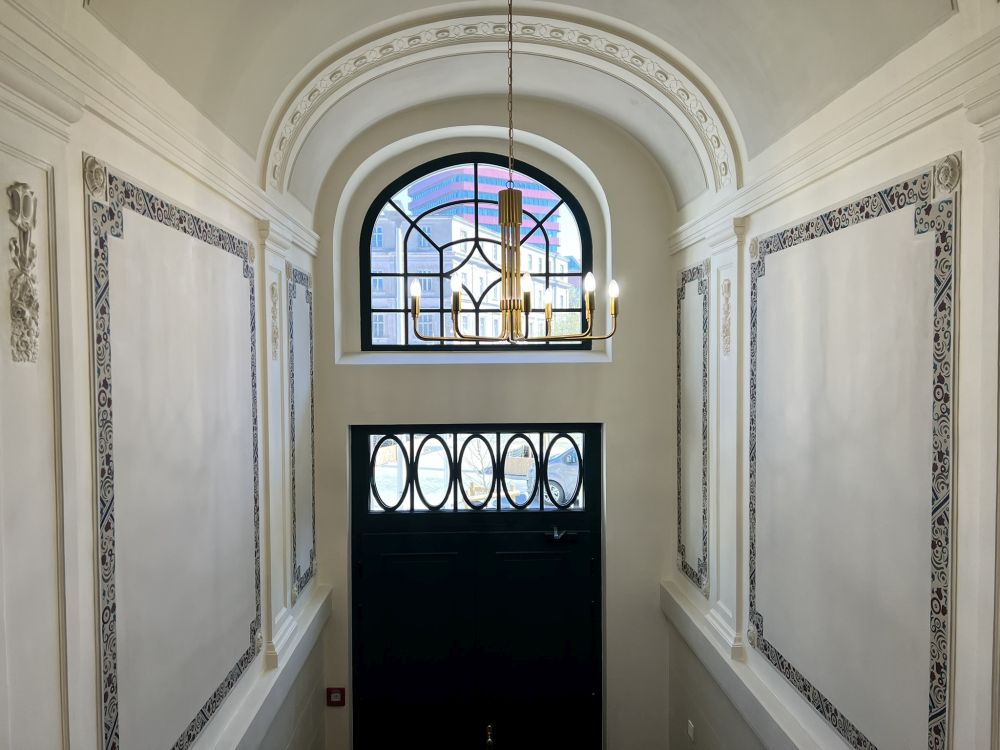W trakcie prac odnowiono reprezentacyjne sienie i klatki schodowe. Zachowano sztukaterie, malowidła oraz oryginalne elementy wyposażenia. Odtworzono także stolarkę drzwiową i witraże. Dzięki temu części wspólne ponownie zachwycają historycznym charakterem.